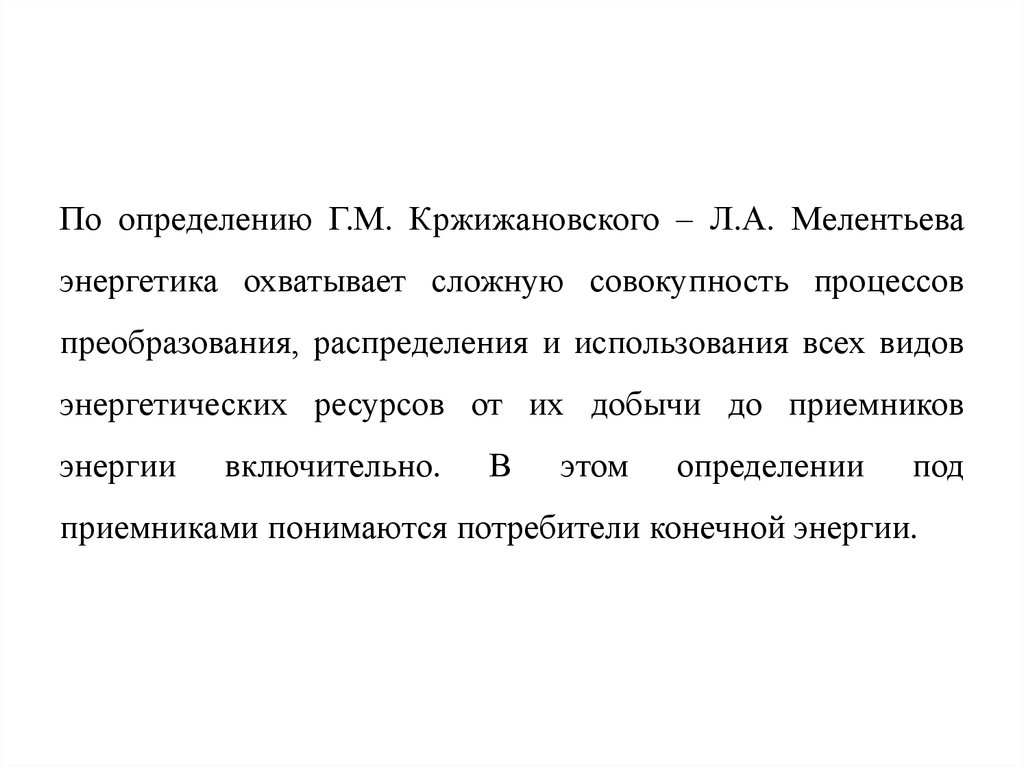 По определению Г.М. Кржижановского – Л.А. Мелентьеваэнергетика охватывает сложную совокупность процессов