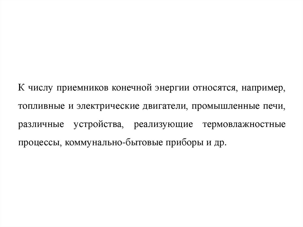 К числу приемников конечной энергии относятся, например,топливные и электрические двигатели, промышленные печи,