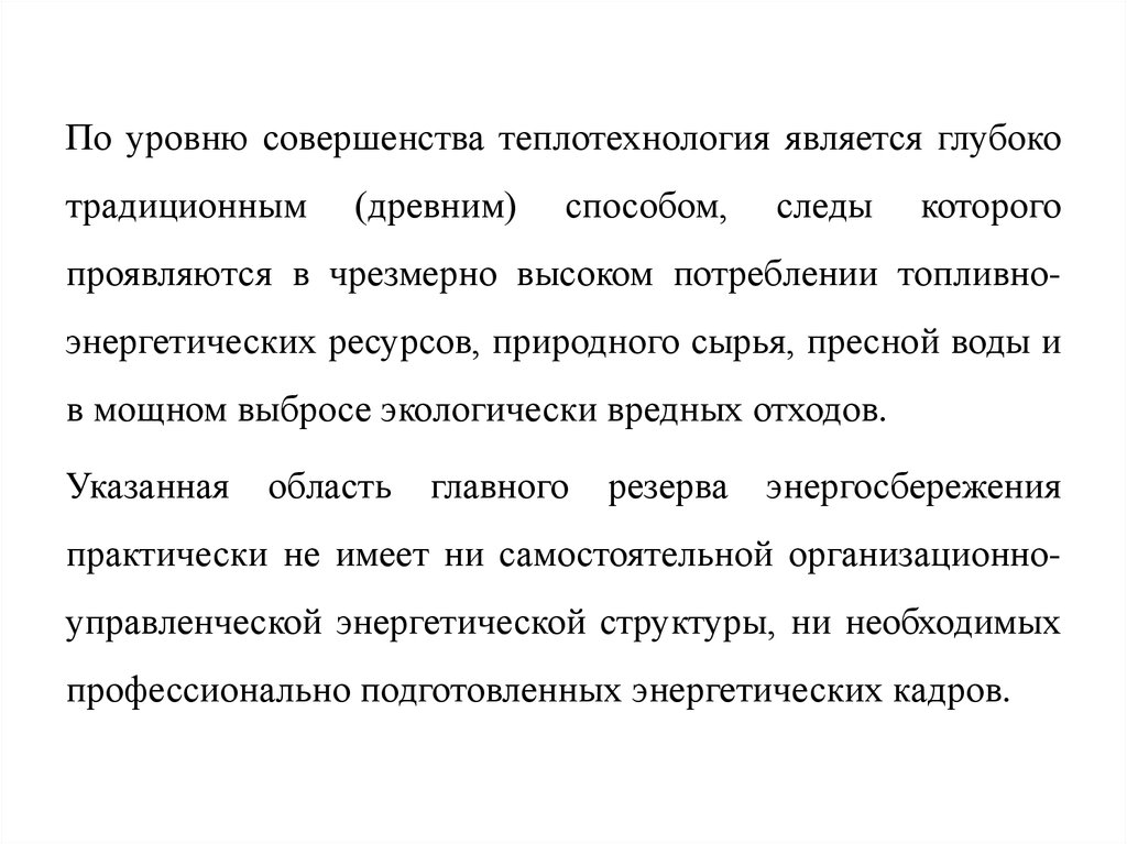 По уровню совершенства теплотехнология является глубокотрадиционным