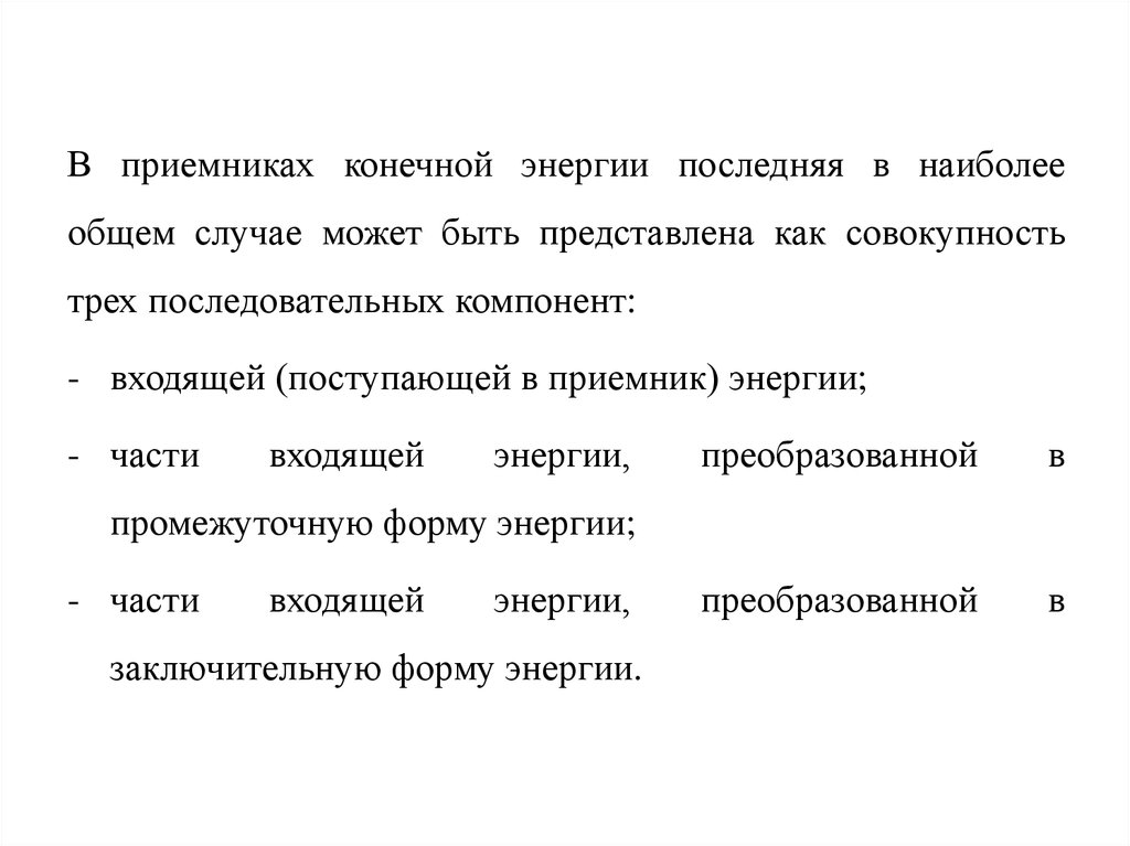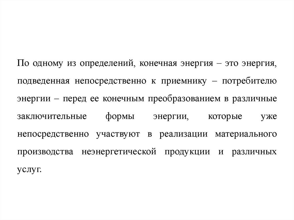 По одному из определений, конечная энергия – это энергия,подведенная непосредственно к приемнику – потребителю
