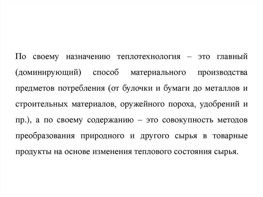 По своему назначению теплотехнология – это главный(доминирующий)