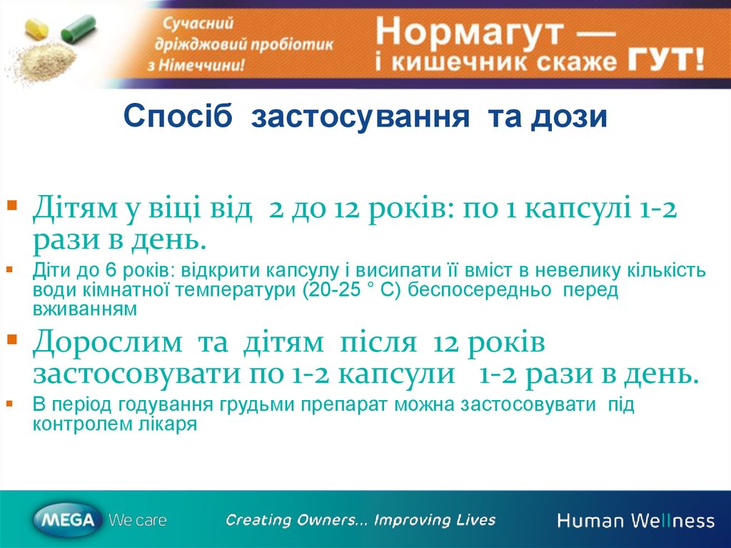 Дітям у віці від 2 до 12 років: по 1 капсулі 1-2рази в день.