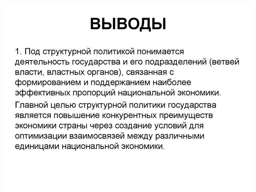 1. Под структурной политикой понимаетсядеятельность государства и его подразделений (ветвей