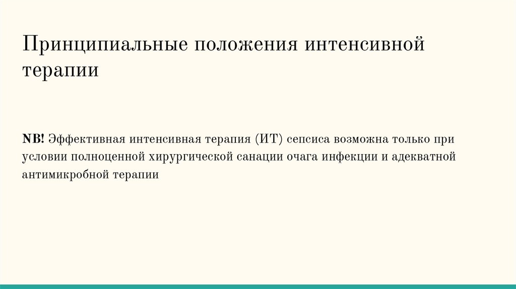 NB! Эффективная интенсивная терапия (ИТ) сепсиса возможна только при