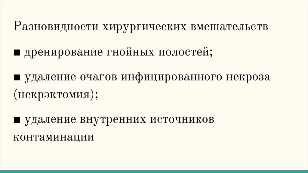 Разновидности хирургических вмешательств■ дренирование гнойных полостей;