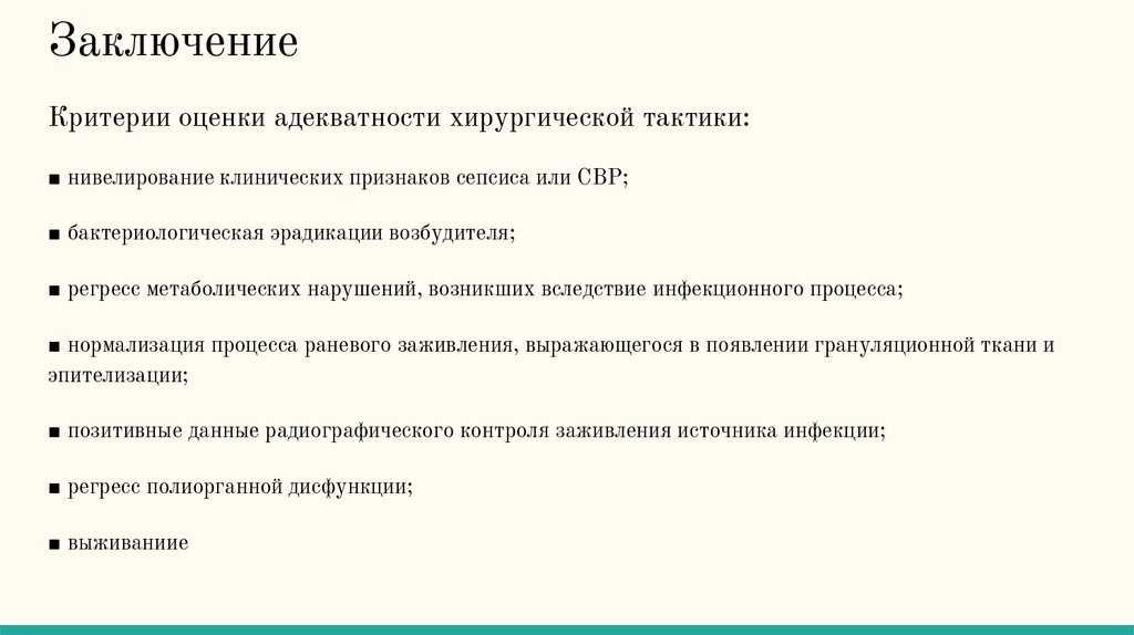 ЗаключениеКритерии оценки адекватности хирургической тактики: