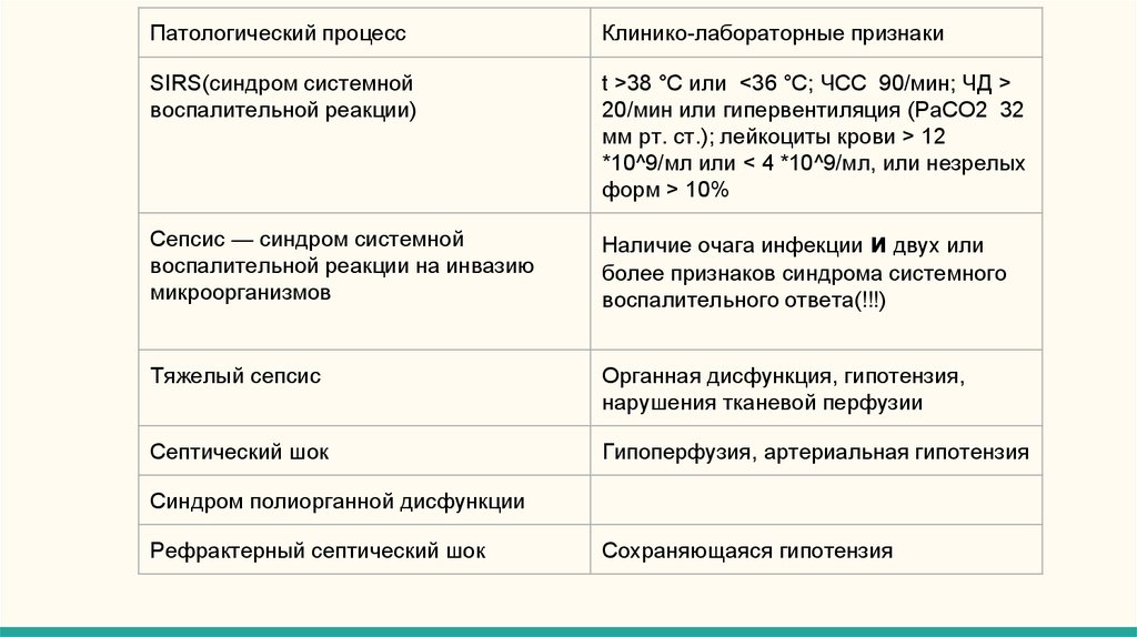 Сепсис. Патологический процесс. Клинико-лабораторные признаки
