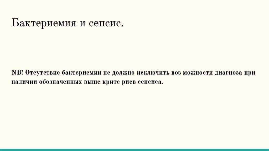 Бактериемия и сепсис.NB! Отсутствие бактериемии не должно исключить воз можности диагноза при