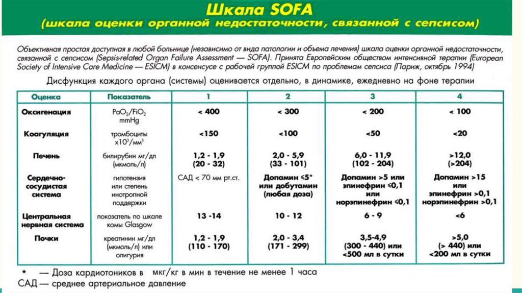 организма в виде генерализованного (системного) воспаления на инфекцию