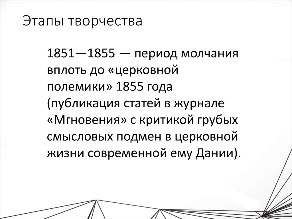 Этапы творчества1851—1855 — период молчания