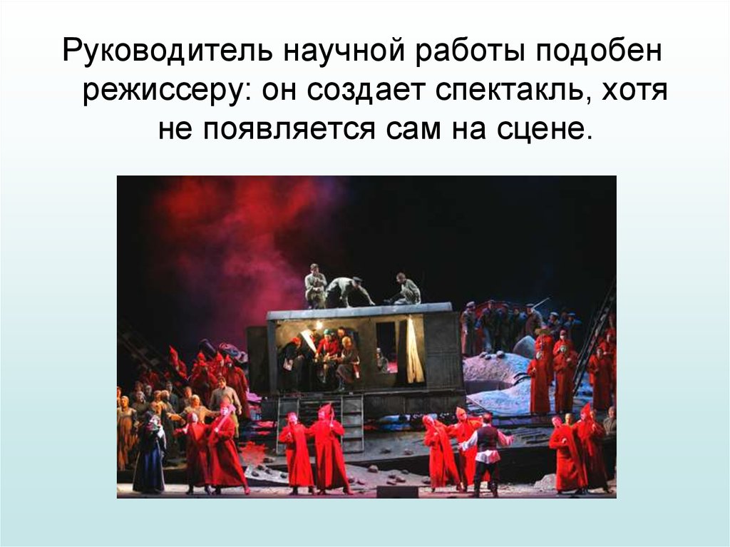 Руководитель научной работы подобенрежиссеру: он создает спектакль, хотя