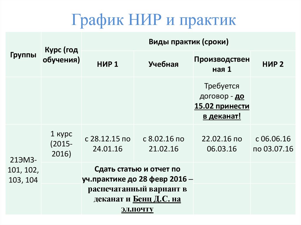 График НИР и практикГруппы