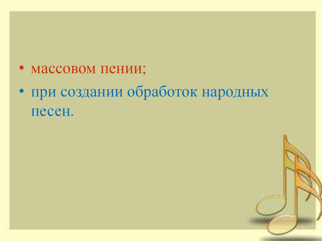 при передаче в хоровом звучании решительных, волевыхинтонаций: