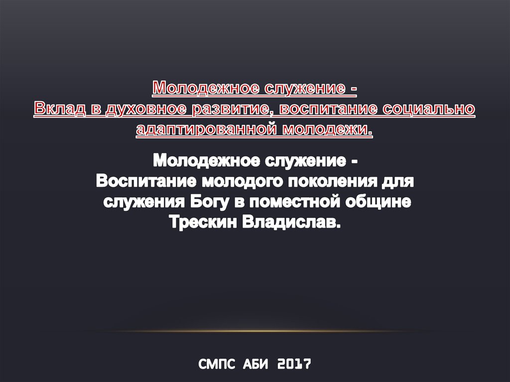 Молодежное служение - вклад в духовное развитие, воспитание социально адаптированной молодежи