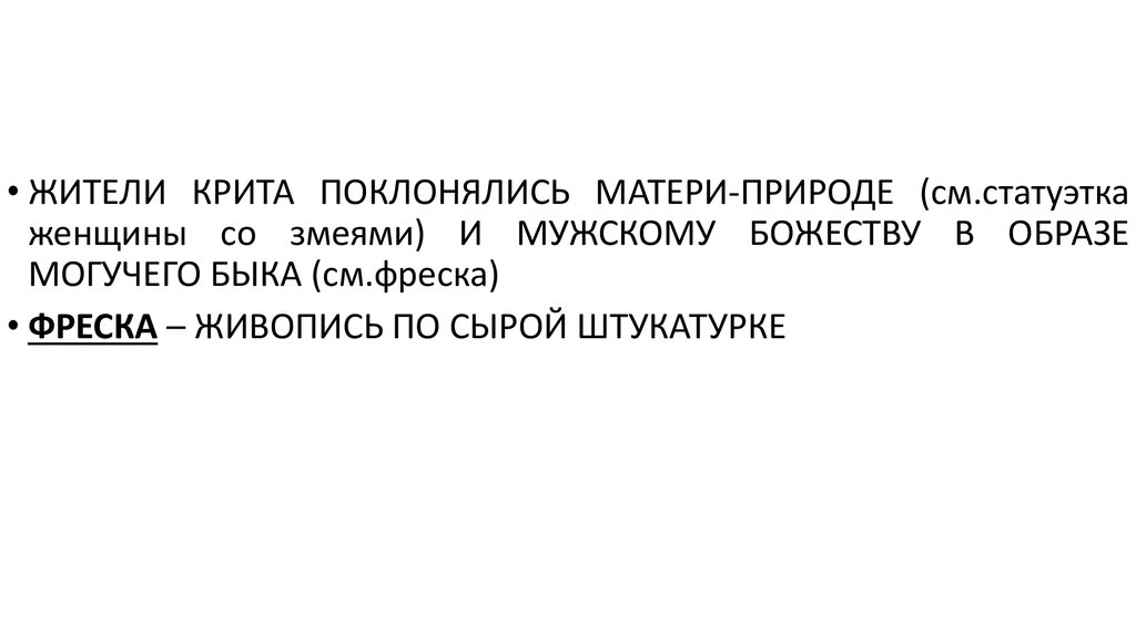 • ЖИТЕЛИ КРИТА ПОКЛОНЯЛИСЬ МАТЕРИ-ПРИРОДЕ (см.статуэтка