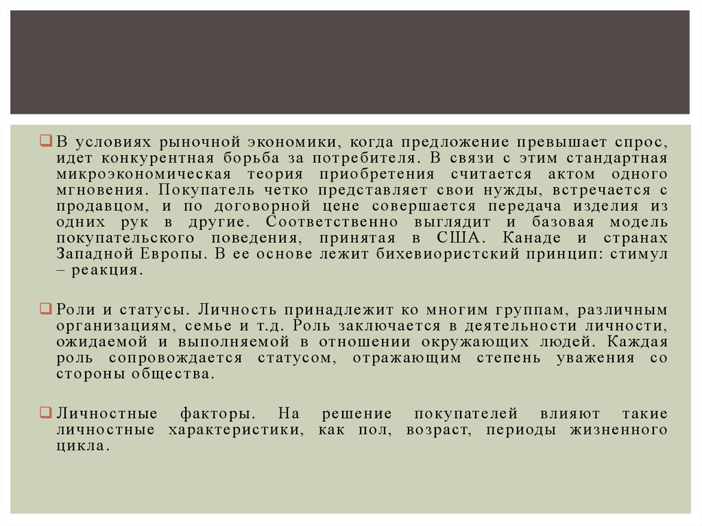 Род занятия оказывает большое внимание на покупку.Психологические факторы. Покупательское поведение личности