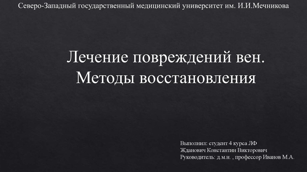 1. Лечение повреждений вен. Методы восстановления