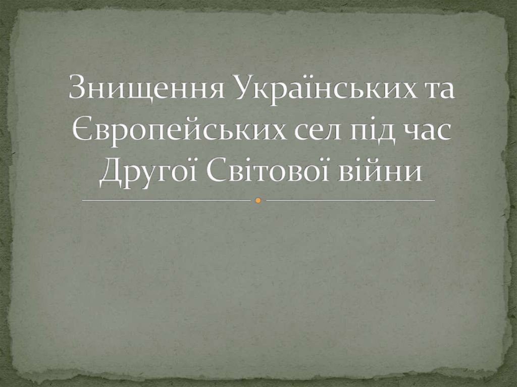 1. Знищення Українських та Європейських сел під час Другої Світової війни