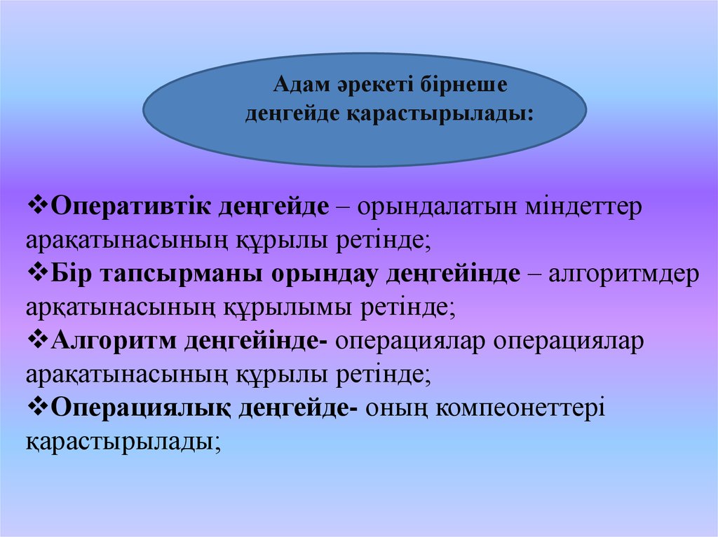 Адам әрекеті бірнешедеңгейде қарастырылады: