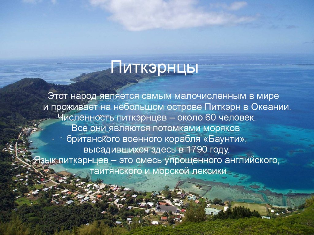 ПиткэрнцыЭтот народ является самым малочисленным в мире
