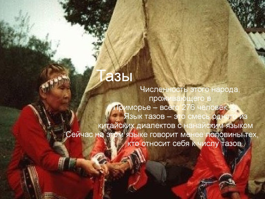 в Приморье – всего 276 человек. Язык тазов – это смесь одного из