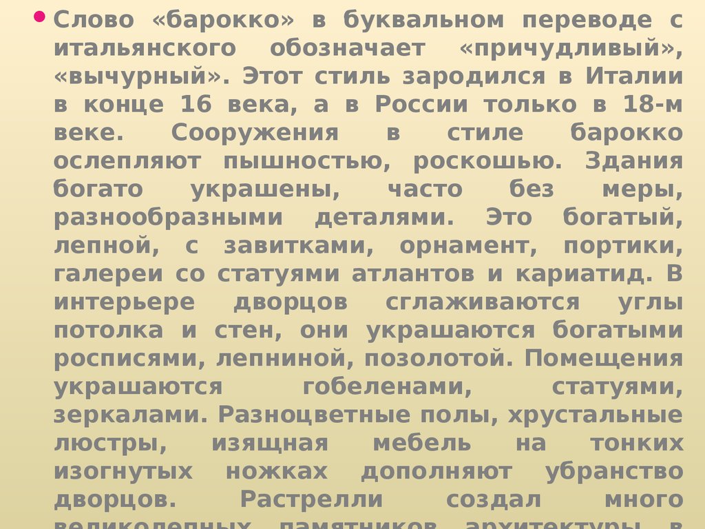 «вычурный». Этот стиль зародился в Италии