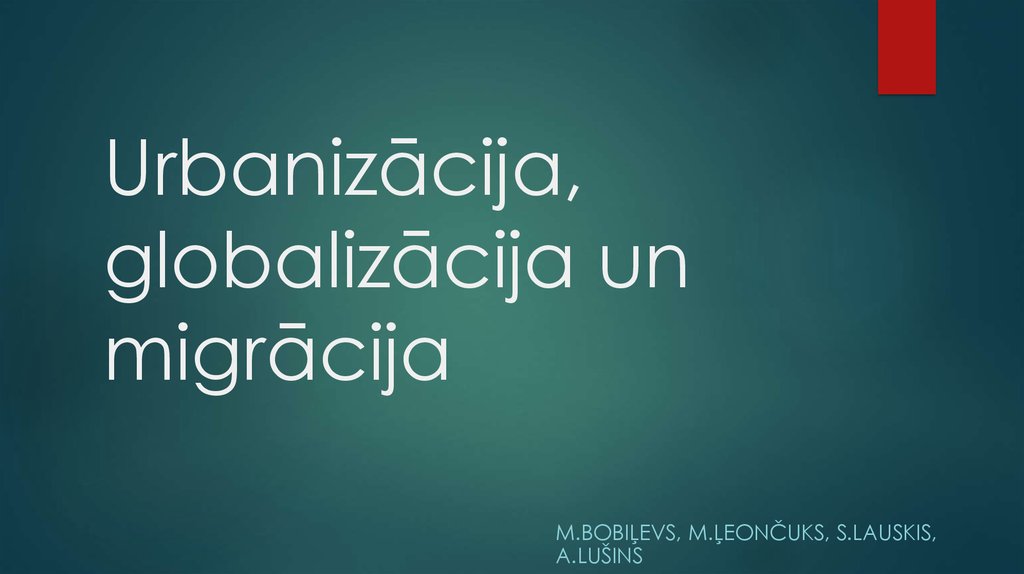 3. Urbanizācija - pilsētu un pilsētnieku skaita pieaugums kādā teritorijā. Pilsētnieku skaits gan Latvijā, gan pasaulē pieaug.