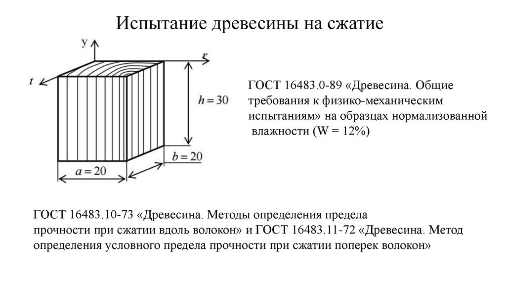 Испытание древесины на сжатиеГОСТ 16483.0-89 «Древесина. Общие