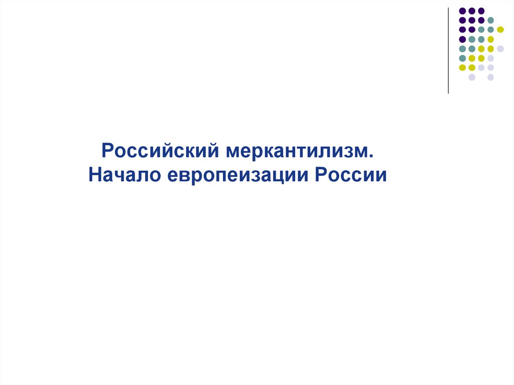 1. Российский меркантилизм. Начало европеизации России