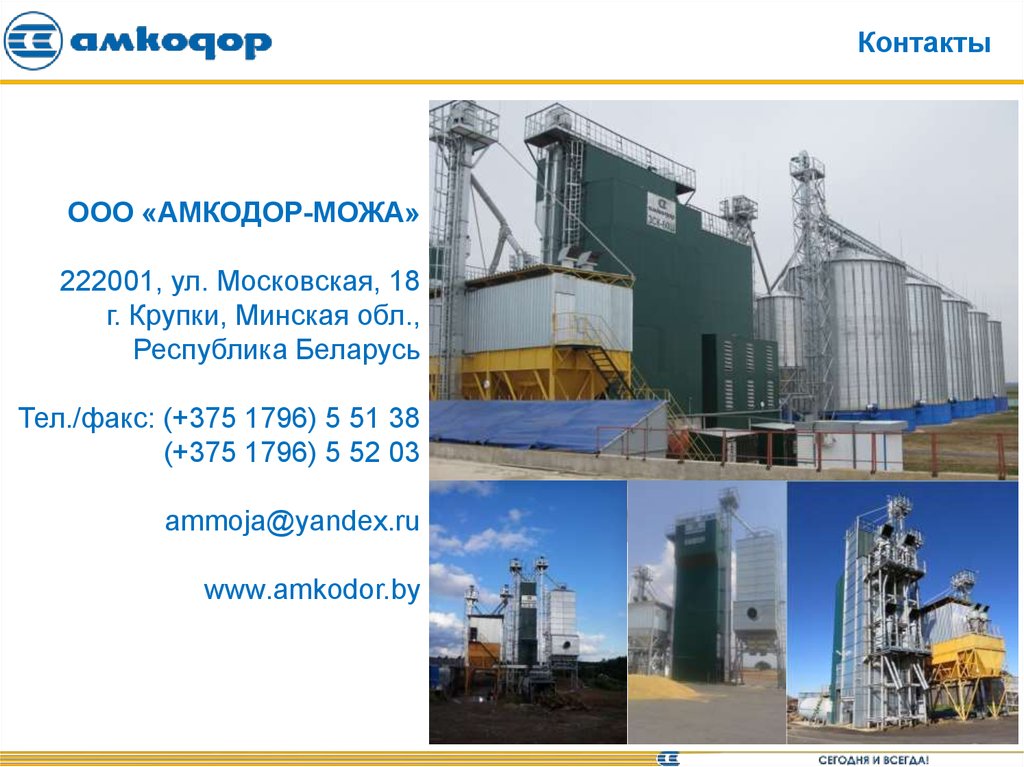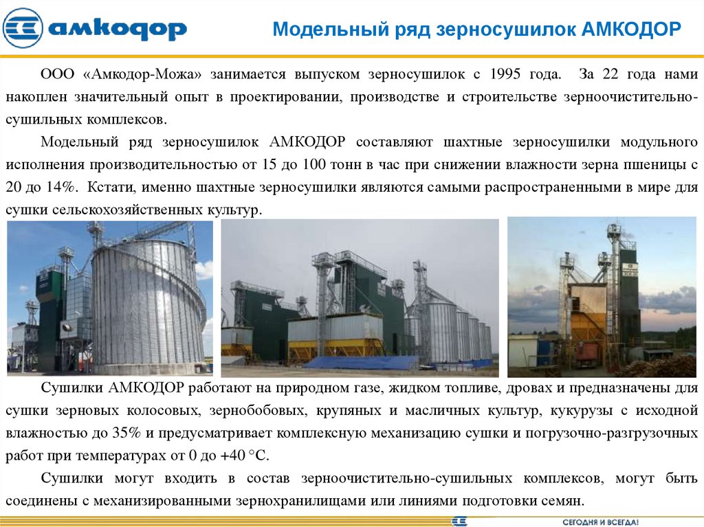 Модельный ряд зерносушилок АМКОДОРООО «Амкодор-Можа» занимается выпуском зерносушилок с 1995 года. За 22 года нами