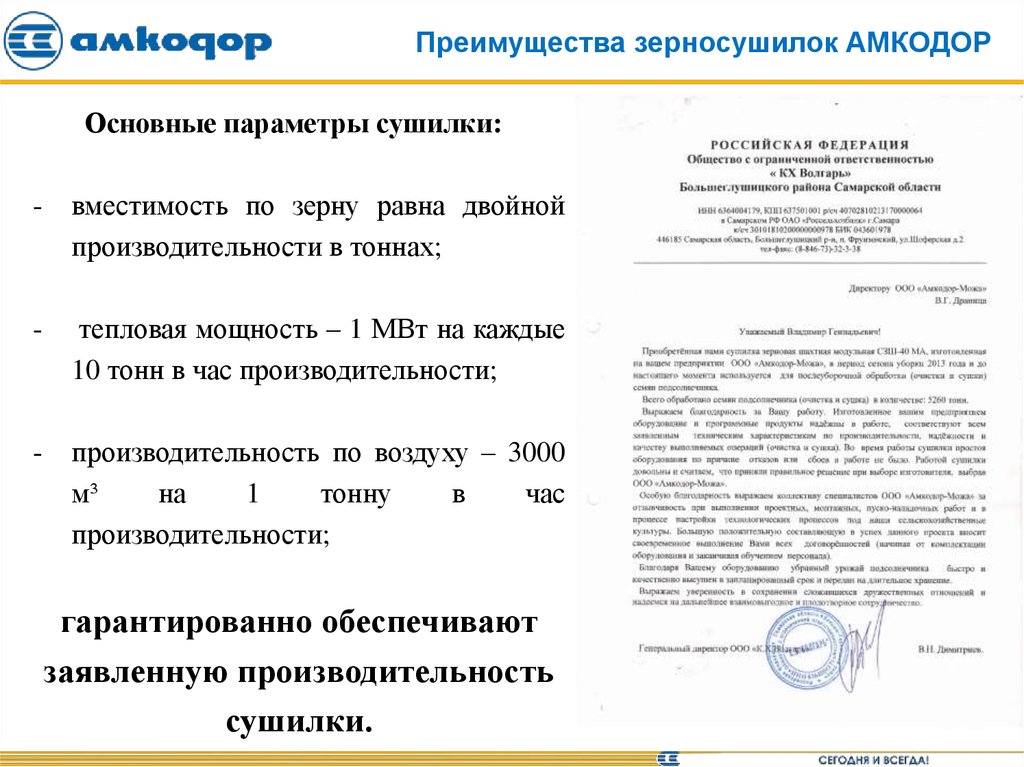 Преимущества зерносушилок АМКОДОРОсновные параметры сушилки: