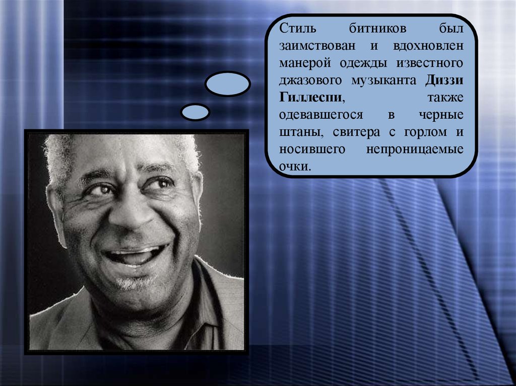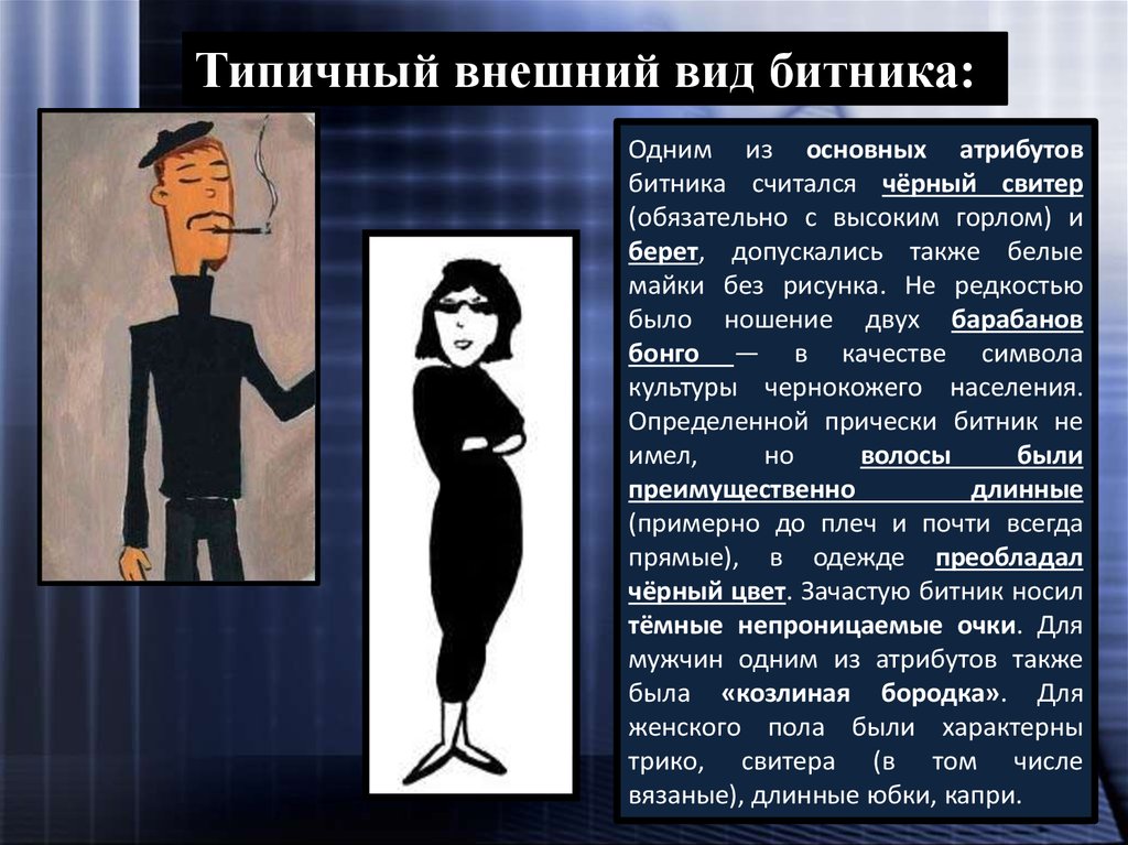 Типичный внешний вид битника:Одним из основных атрибутов