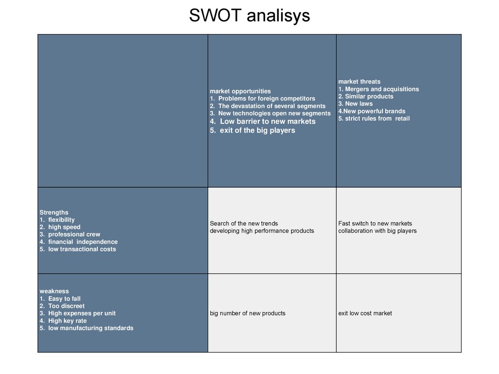 SWOT analisysmarket opportunities