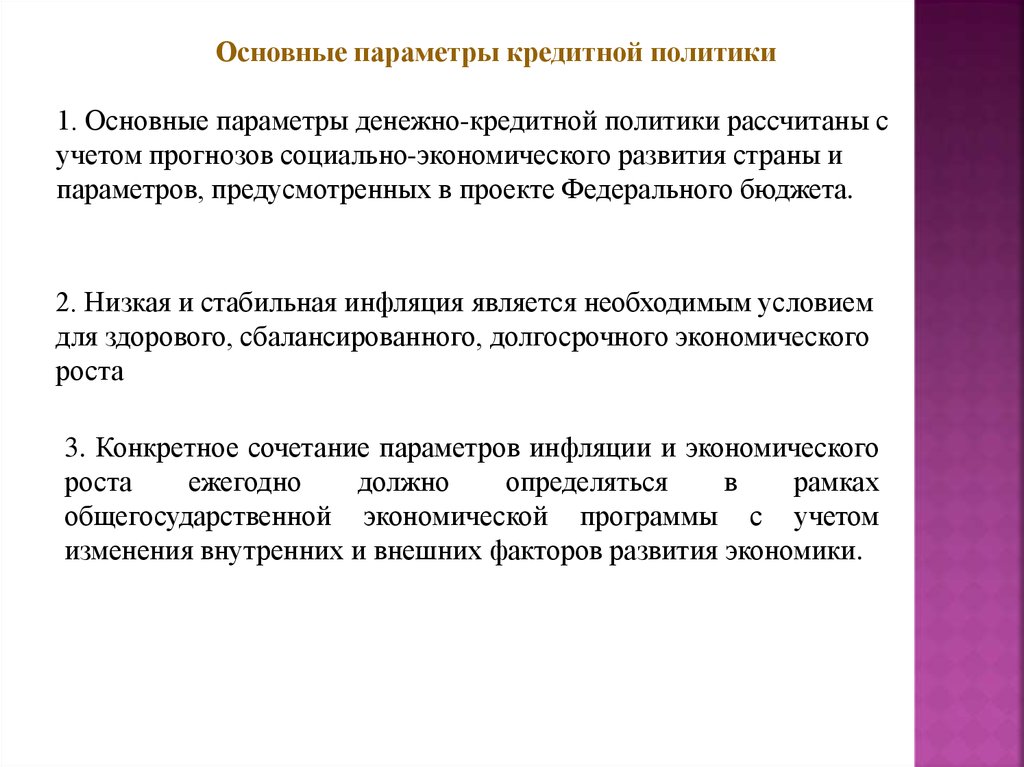 Основные параметры кредитной политики1. Основные параметры денежно-кредитной политики рассчитаны с