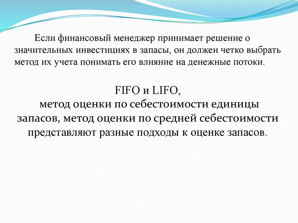 Если финансовый менеджер принимает решение означительных инвестициях в запасы, он должен четко выбрать