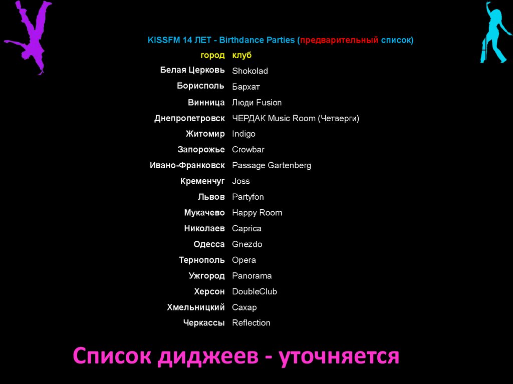 3KISSFM 14 ЛЕТ - Birthdance Parties (предварительный список)