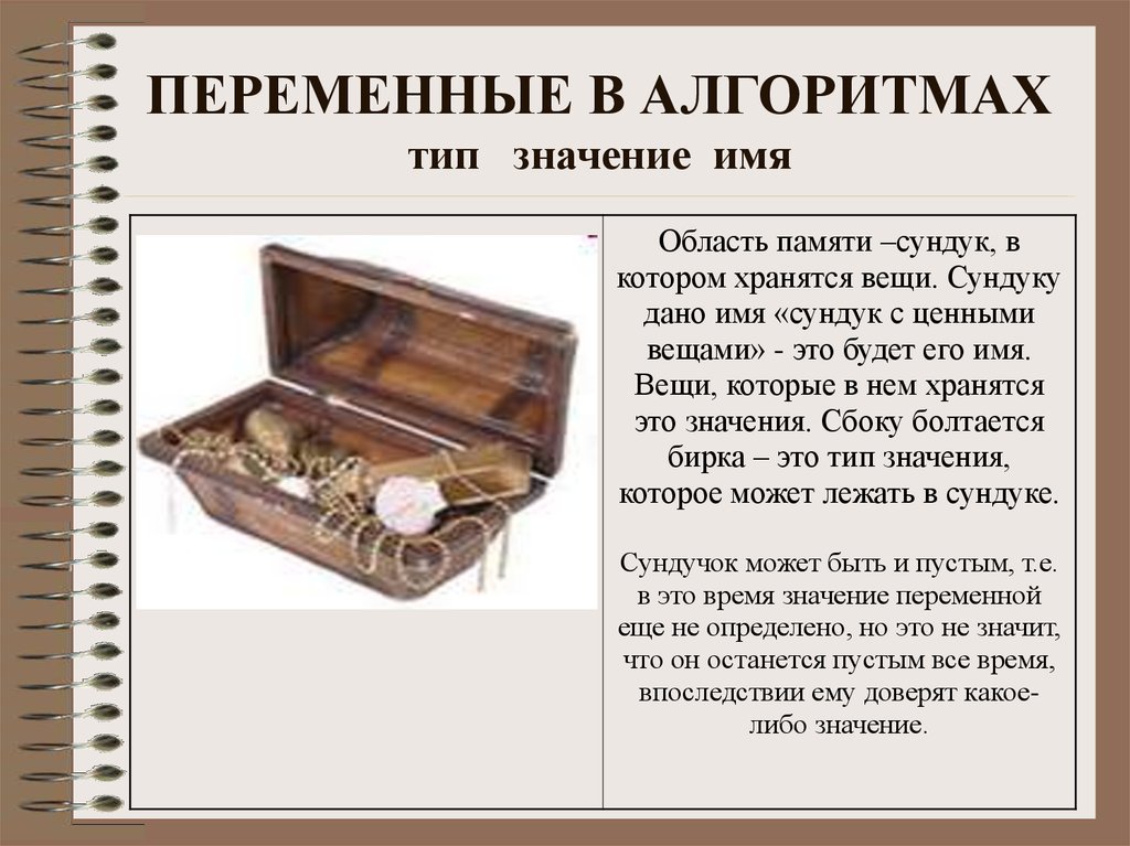 ПЕРЕМЕННЫЕ В АЛГОРИТМАХтип значение имя