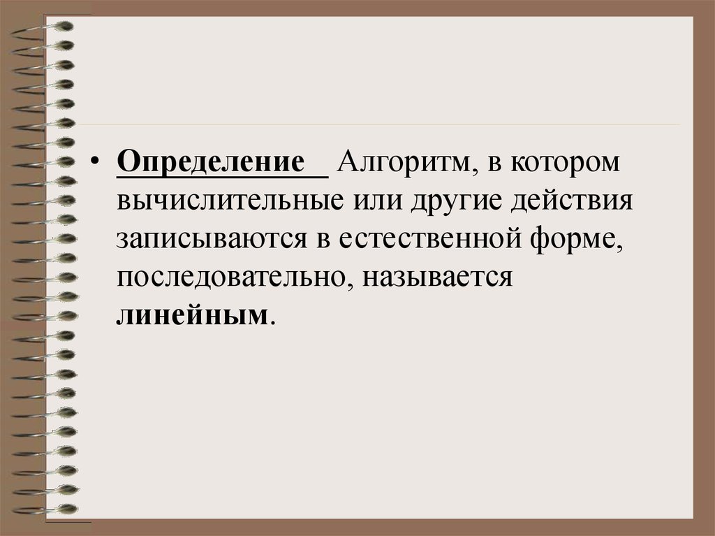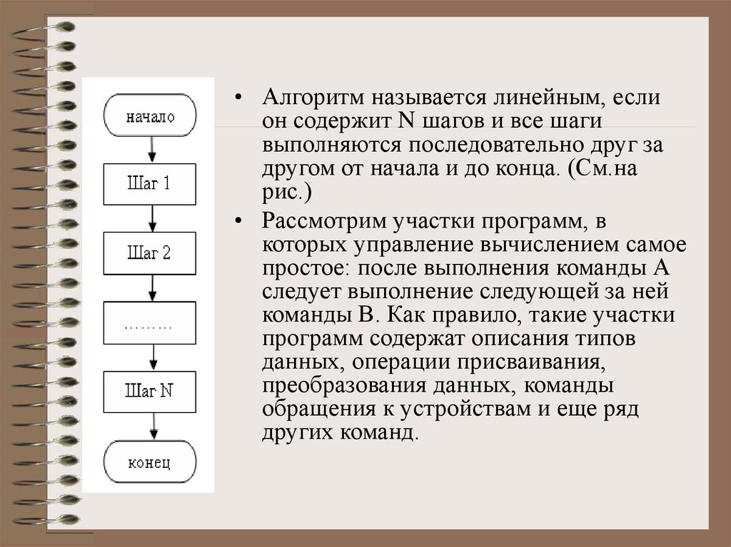 • Алгоритм называется линейным, еслион содержит N шагов и все шаги
