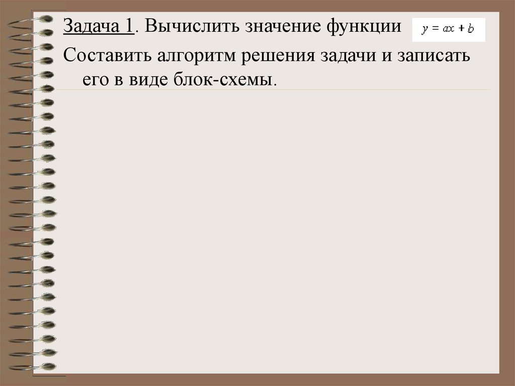 Задача 1. Вычислить значение функцииСоставить алгоритм решения задачи и записать