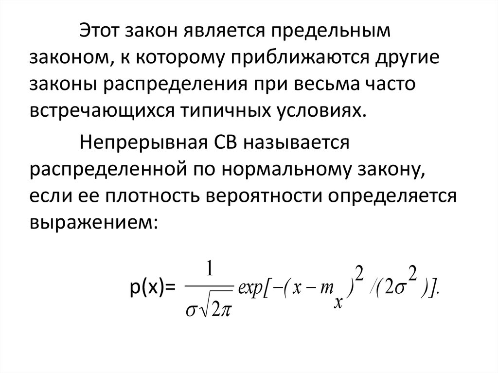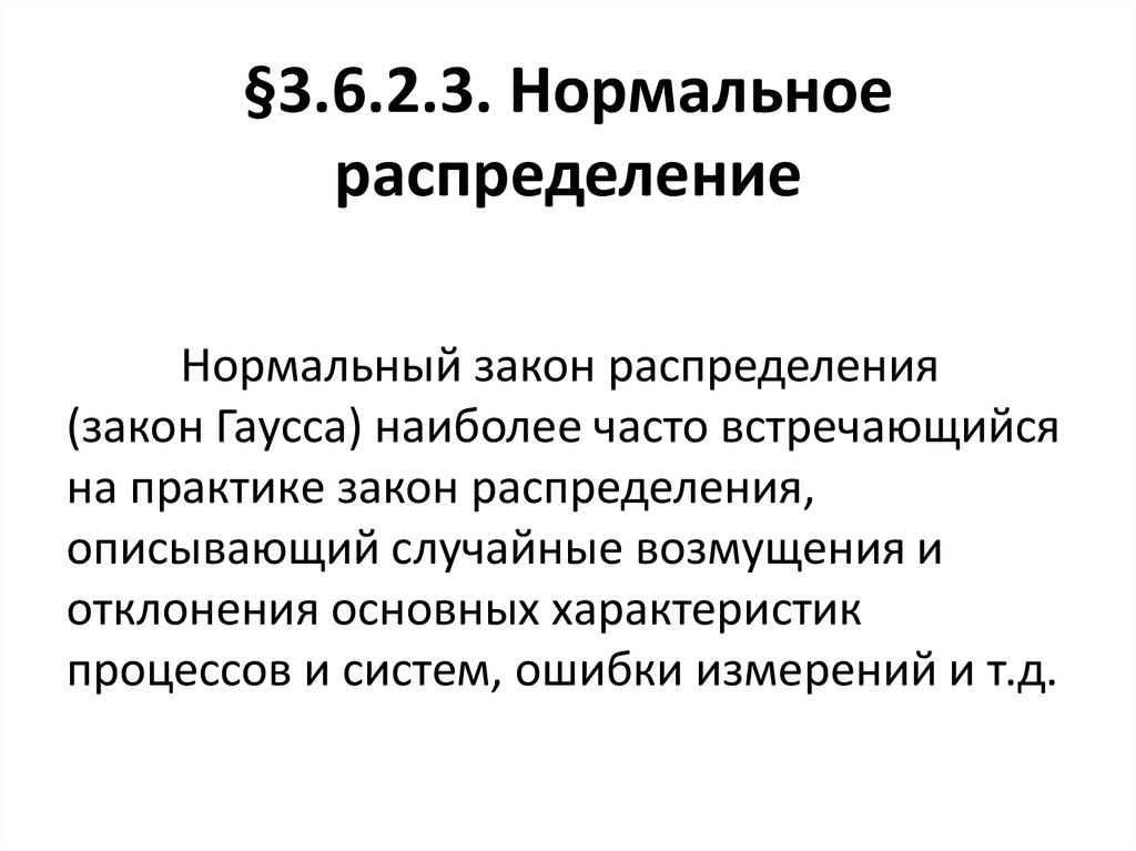 Нормальный закон распределения(закон Гаусса) наиболее часто встречающийся