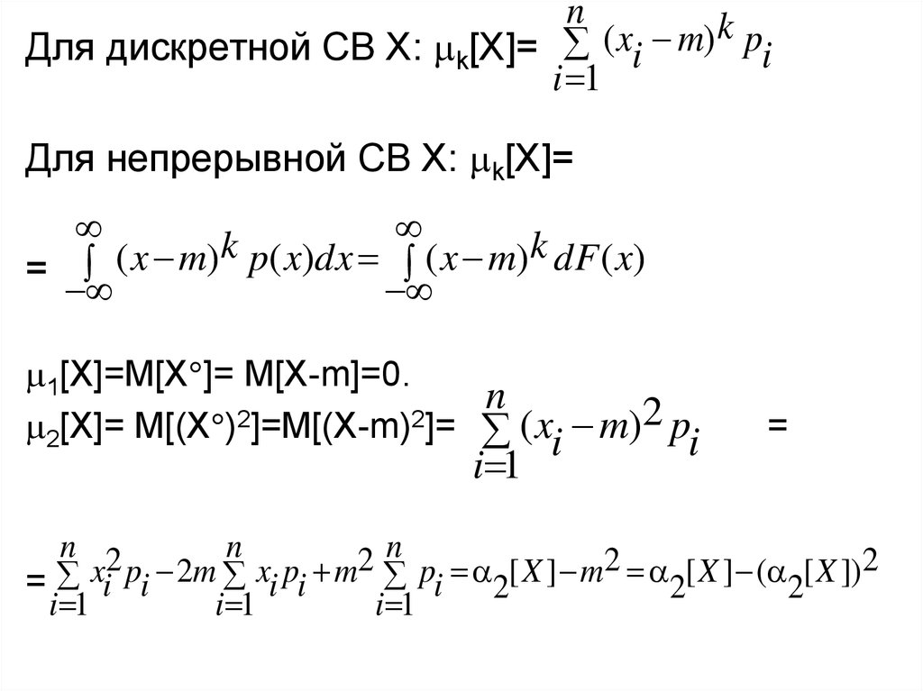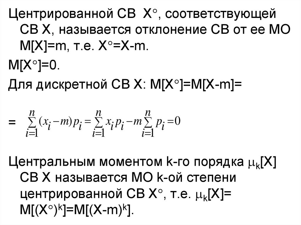 Для дискретной СВ Х: M[X ]=M[X-m]=