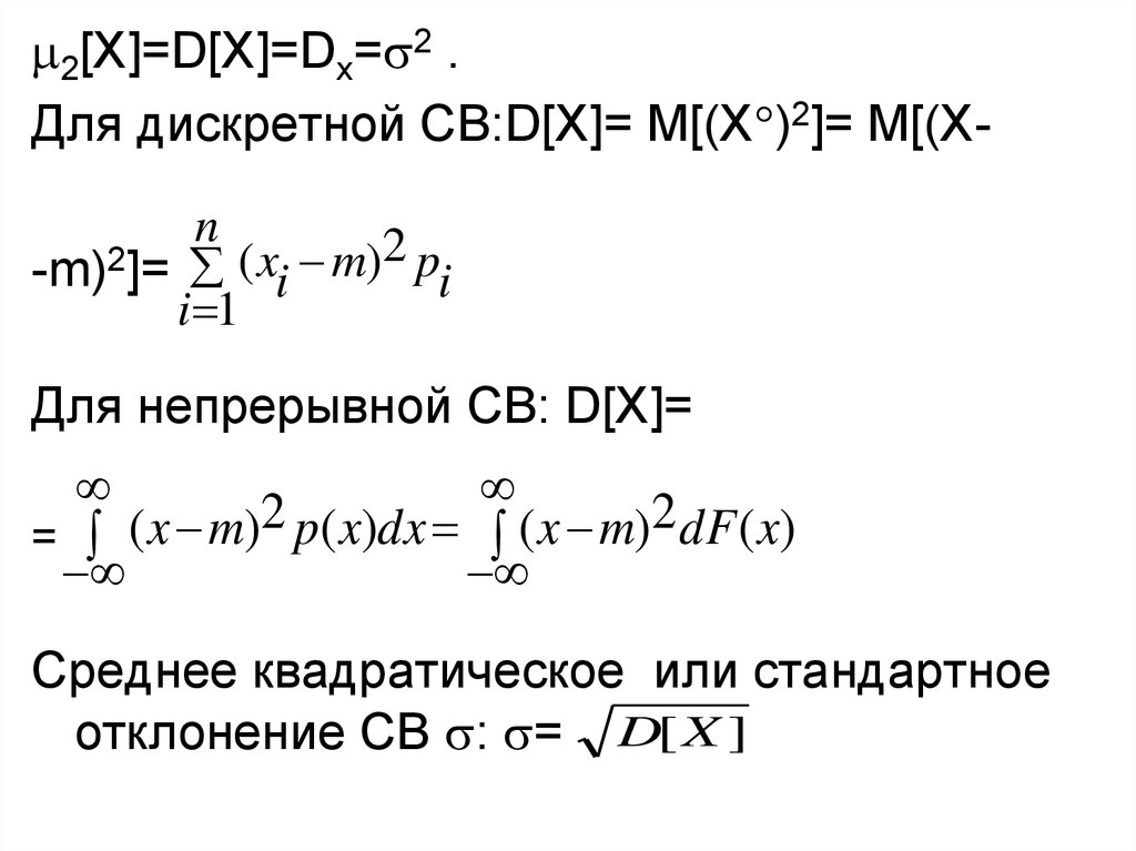 2[X]=D[X]=Dx= 2 .Для дискретной СВ:D[X]= M[(X )2]= M[(Xn