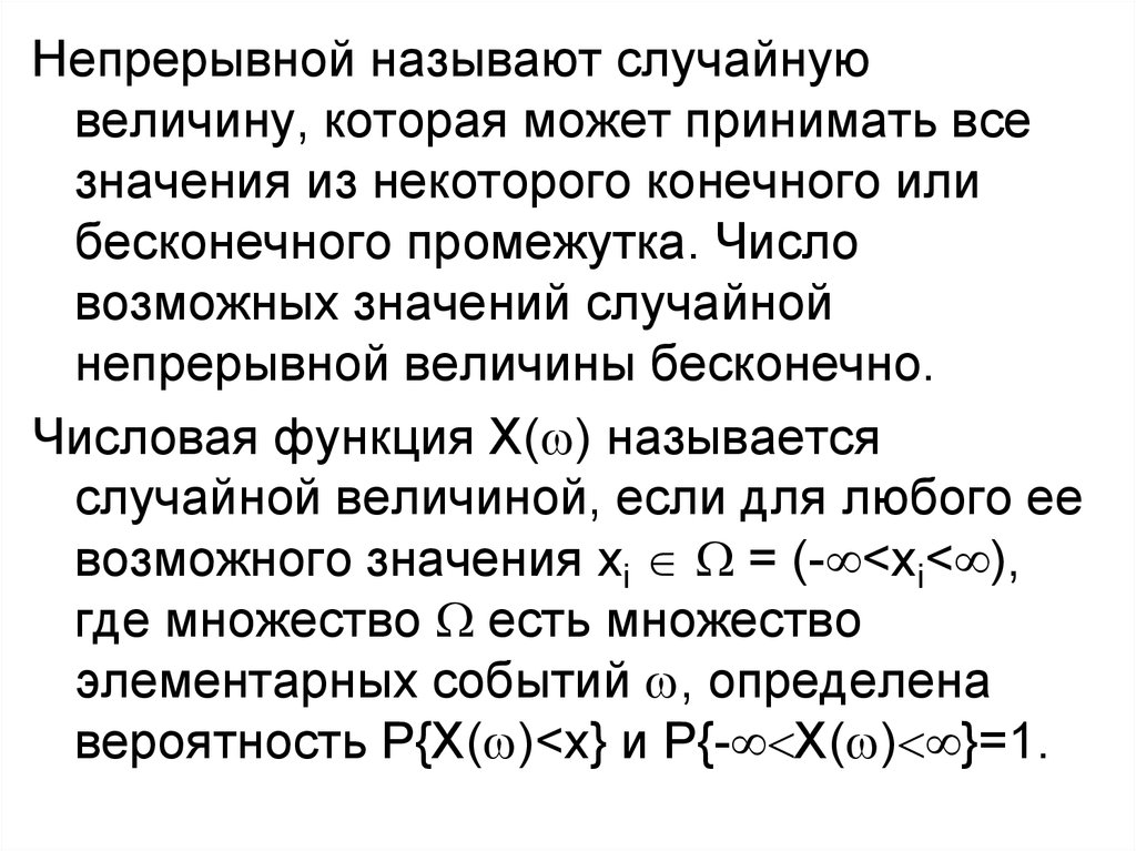 Непрерывной называют случайнуювеличину, которая может принимать все