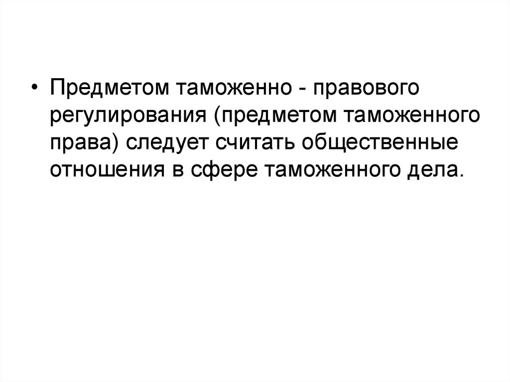 • Предметом таможенно - правовогорегулирования (предметом таможенного