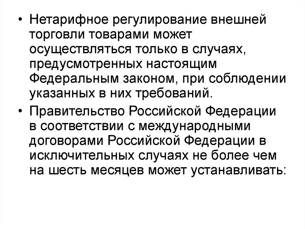 • Нетарифное регулирование внешнейторговли товарами может