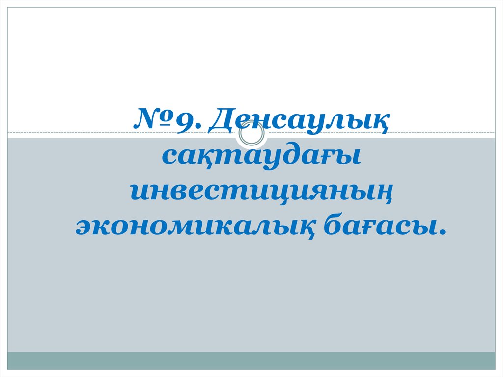 1. №9. Денсаулық сақтаудағы инвестицияның экономикалық бағасы.