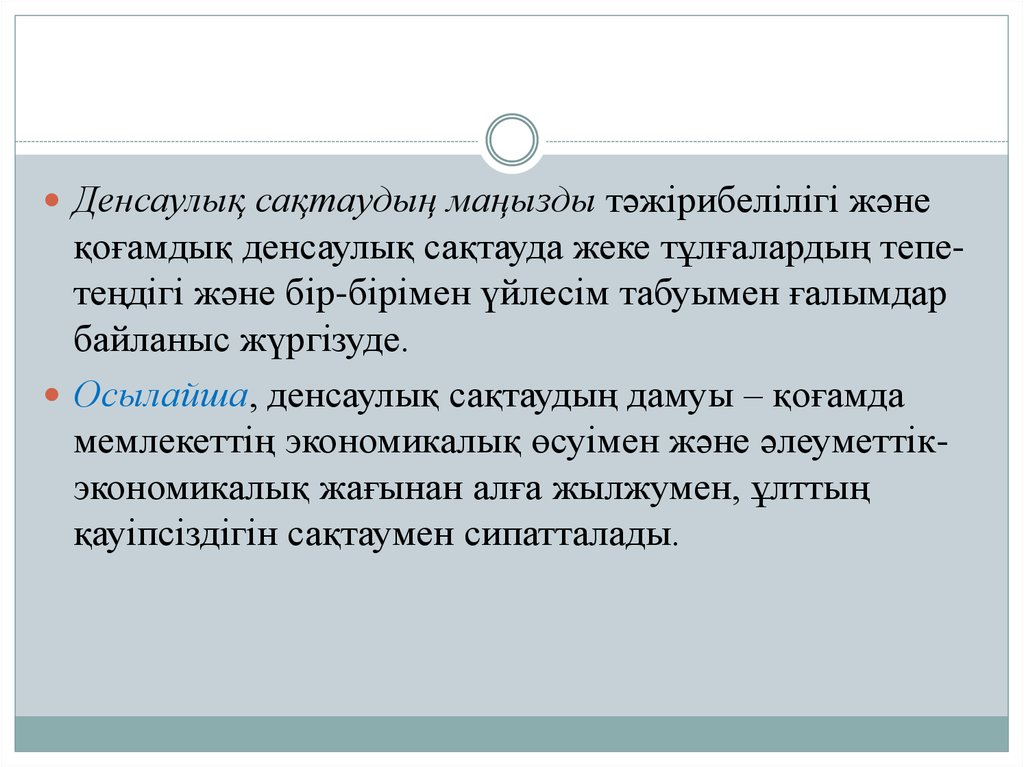 Денсаулық сақтаудың маңызды тәжірибелілігі жәнеқоғамдық денсаулық сақтауда жеке тұлғалардың тепетеңдігі және бір-бірімен үйлесім табуымен ғалымдар