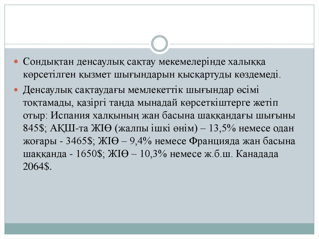 Сондықтан денсаулық сақтау мекемелерінде халыққакөрсетілген қызмет шығындарын қысқартуды көздемеді.