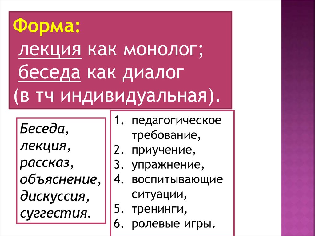Форма:лекция как монолог;