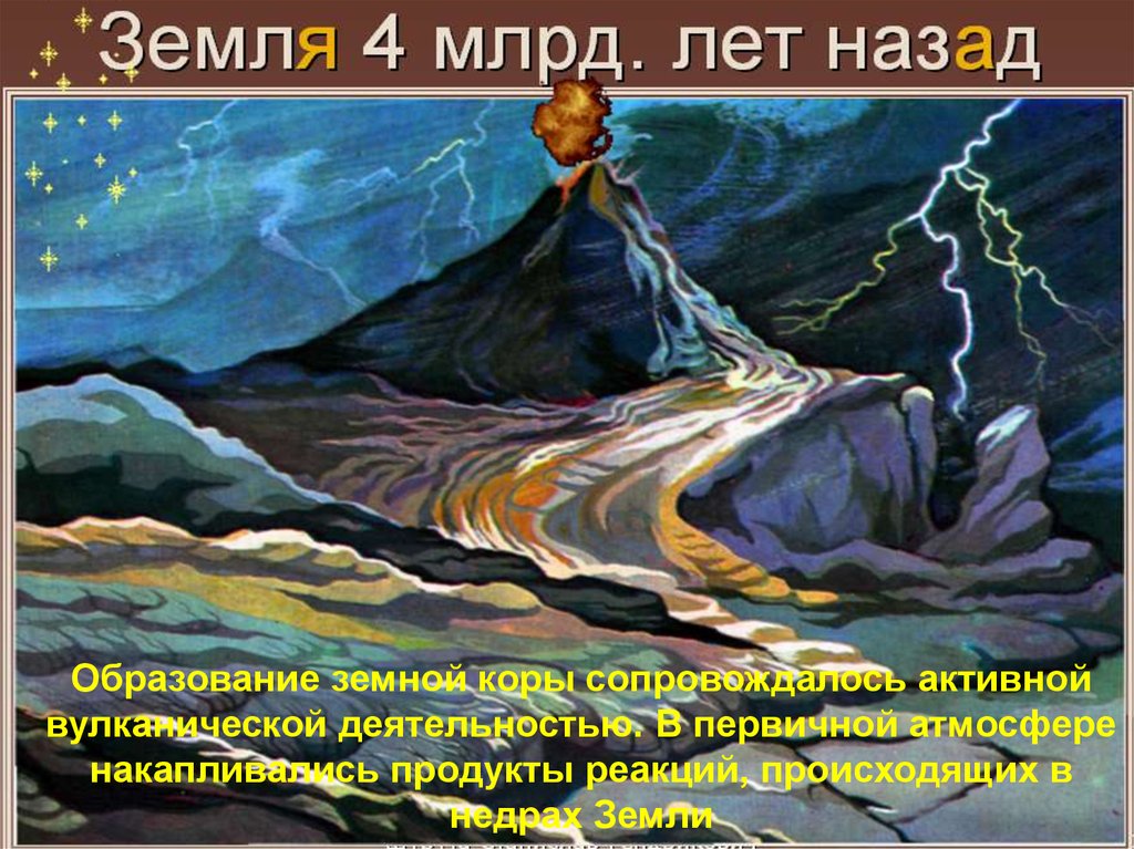 Образование земной коры сопровождалось активнойвулканической деятельностью. В первичной атмосфере